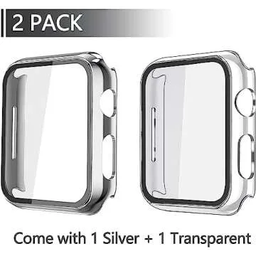 Misxi 2 Pack Hard PC Case with Tempered Glass Screen Protector Compatible with Apple Watch SE 2 (2024) SE Series 6 Series 5 Series 4 40mm, 1 Sliver + 1 Transparent
