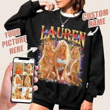 Mit & Mia Personalized Shirt Bootleg Rap Tee Shirt Custom Sweatshirts for Women Custom Crewneck Shirts for Boyfriend Girlfriend Vintage Face Shirt Gift for Valentines Halloween Christmas
