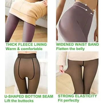 Show moreIntroducing the ultimate winter wardrobe essential: our revolutionary fleece-lined tights, designed specifically for the modern woman who refuses to compromise on style or comfort. With a unique blend of style and functionality, these tights offer a clever combination of fake translucency and superior warmth. Made from soft, elastic, and breathable materials, they promise a skin-friendly experience that keeps you cozy even in the coldest temperatures, making them perfect for the chilly season where temperatures drop between 32℉- 50℉.