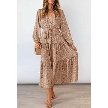 Show moreIntroducing the enchanting MITILLY Women's Boho Leopard Print Ruffle Long Sleeve V Neck Casual Flowy Party Maxi Dress, a dress that captures the essence of effortless elegance blended with a stylish bohemian flair. This exquisite dress features a stunning leopard print that effortlessly transitions from casual outings to more formal occasions. With long, balloon sleeves that add a touch of sophistication and a flattering wrap V-neckline, you’ll feel as lovely as you look. The elastic waist and self-tie belt allow for a customizable fit, while the tiered bottom and ruffle hem create a delightful movement that flows with every step you take. Crafted from a soft, breathable fabric, this maxi dress is designed to keep you comfortable and relaxed, making it a must-have addition to your wardrobe.