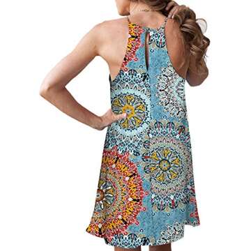 MITILLY Women's Halter Neck Boho Floral Print Loose Casual Sleeveless Short Dress Medium Multicolor Blue