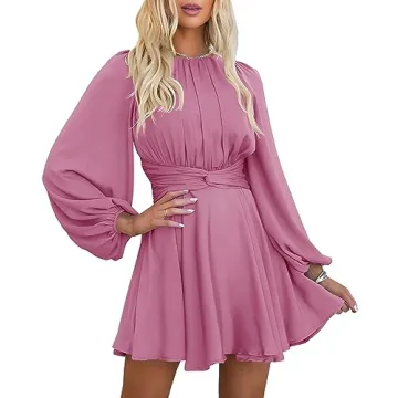 Show moreIntroducing the exquisite MITILLY Women's Satin Crewneck Long Lantern Sleeve Elastic Waist Tie Back Ruffle Flowy Short Formal Dress. This luxurious piece is not just a dress; it's an experience. Made from the finest satin fabric, it offers a smooth and delicate touch, ensuring you feel fabulous all day long. With sizes ranging from S (US 4-6) to XL (US 16-18), this dress is designed to fit a variety of body types, making it suitable for a multitude of occasions. The enchanting dusty rose color exudes a romantic charm that can be effortlessly worn year-round.