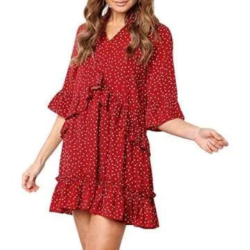Introducing the perfect summer and fall dress – a stunning combination of style and comfort that will elevate your wardrobe to new heights. This dress features a delightful polka dot pattern and is designed with a high ruffle neckline that adds a touch of elegance. The loose style is complemented by its half sleeves and a charming ruffle hem, making it an ideal choice for both casual wear and special occasions. Equipped with two...