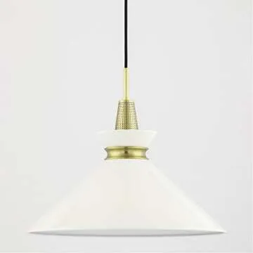 Show moreIlluminate your space with sophisticated elegance with the Mitzi by Hudson Valley H251701L-AGB/CR Kiki - 1-Light Large Pendant. This stunning lighting fixture features a luxurious aged brass finish that exudes a timeless charm, while the cream shade beautifully diffuses light, creating a warm and inviting atmosphere. Designed with a medium E26 base, this pendant lamp accommodates bulbs up to 75W, providing ample brightness for any room. Perfect for both modern and traditional interiors, this pendant is not just a lighting fixture; it’s a statement piece that enhances your home decor.