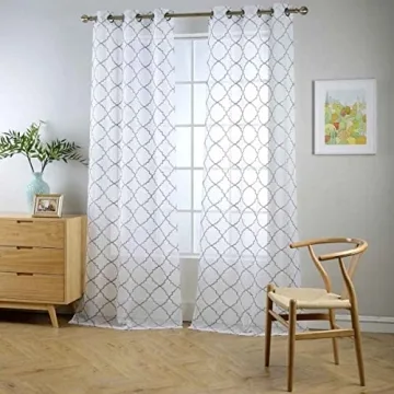 Show moreTransform your space with the stunning MIUCO White Sheer Curtains, a masterful blend of elegance and practicality. Each set includes two beautifully embroidered panels, each measuring 37 inches wide by 84 inches long, making them ideal for any standard window. The chic design features a delicate trellis pattern that not only enhances the aesthetic of your room but also allows for the perfect diffusion of light, creating a warm and inviting ambiance in your home.