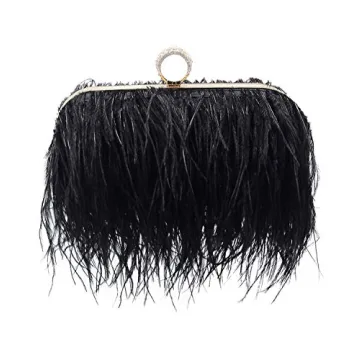 Miuco Women Feather Clutch Purse Shoulder Crossbody Bag Evening Handbags Black