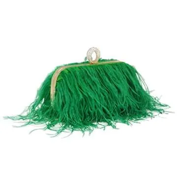 Miuco Women Feather Clutch Purse Shoulder Crossbody Bag Evening Handbags (Green)