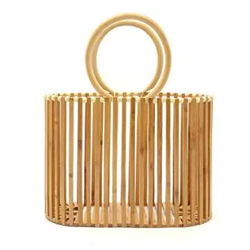 Miuco Women Top Handle Handbags Bamboo Purses Tote Brown