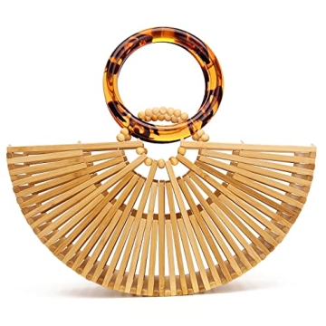 Introducing the Miuco Women’s Bamboo Handbags Handmade Purses Tote Bag – a perfect blend of style, sustainability, and exceptional quality. Crafted from 100% bamboo, this trendy handbag showcases a unique bohemian aesthetic that's perfect for the eco-conscious fashionista. Available in two sizes, small (8.6" x 6.88" x 2.55") and large (11" x 9.56" x 2.75"), every bag is completely handmade, offering an exclusive touch that mass-produced items lack. Not only is this bag lightweight and...