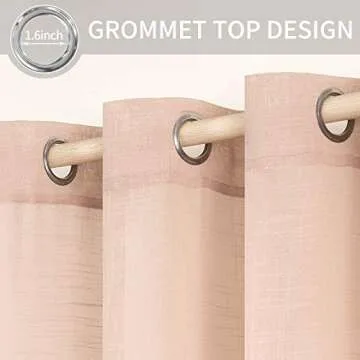 Show more Elevate your interior spaces with the stunning MIULEE Natural Linen Semi Sheer Window Curtains. Available in exquisite blush pink, these elegant drapes combine functionality with stylish flair, effortlessly transforming any room into a haven of comfort and sophistication. With generous dimensions of 52 inches wide by 90 inches long and featuring 8 chic silver grommets, these panels provide an upscale look and are versatile enough to suit any decor theme. Crafted from high-quality linen fabric, these curtains not only appear luxurious but are also designed for durability, making them a splendid addition to your home.