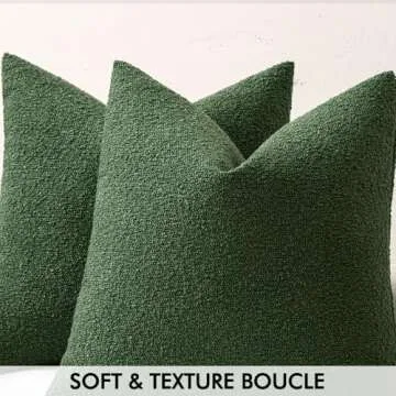 Show moreRevamp your home decor with the MIULEE 20x20 Inch Decorative Pillow Covers, designed to infuse your living space with a touch of elegance and comfort. Crafted from premium quality boucle fabric, these pillow covers showcase an exquisite mid-century modern design that combines a trendy loop texture with a timeless aesthetic, ensuring they complement a variety of styles from modern to boho. Available in a soothing hunter green hue, these covers create a tranquil atmosphere and bring a hint of nature indoors, perfect for enhancing any living space.