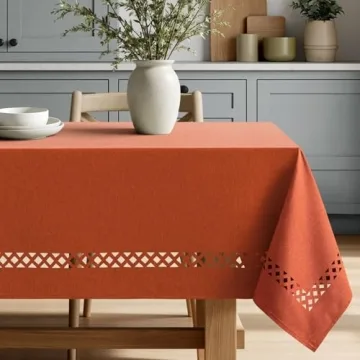 MIULEE Burnt Orange Rectangle Linen Polyester Fall Thanksgiving Tablecloth with Decorative Cutouts Waterproof Stain Resistant Table Cloth 52x70 inch Farmhouse Style for Dining Wedding Party