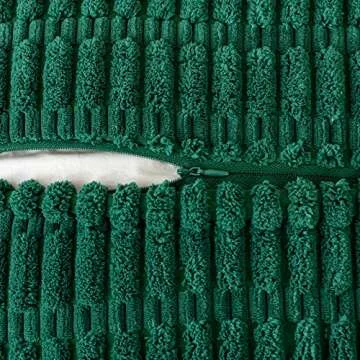 MIULEE Green Corduroy Decorative Throw Pillow Covers Pack of 2 Soft Striped Pillows Pillowcases with Broad Edge Winter Modern Boho Home Decor for Couch Sofa Bed Spring 18x18 Inch