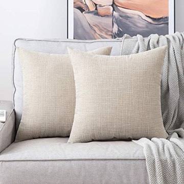 Show more Transform your living space with the MIULEE Linen Decorative Rustic Throw Pillow Covers Set of 2. Crafted from high-quality linen, these 18x18 square pillowcases exude a charming, farmhouse aesthetic that beautifully complements any home decor. With their soothing beige tone, they are ideal for sofas, couches, beds, and chairs, infusing a touch of rustic elegance into your environment. The fabric is durable and designed to enhance with time while offering an effortless way to update your interior. Whether you’re redesigning a room or simply refreshing your decor, these pillow covers are the perfect choice. Less