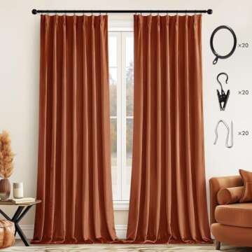 Show moreIntroducing our stunning MIULEE Real Pinch Pleated Velvet Curtains—a perfect blend of elegance and functionality that will transform any living space. Crafted from luxurious velvet fabric, these curtains not only enhance your decor but also serve as an essential element for light control and energy efficiency. Available in a vibrant orange hue, they provide a warm and inviting touch, making any room feel more luxurious and sophisticated. Each set contains two panels measuring 40 inches wide and 96 inches long, allowing ample coverage for larger windows. An included set of 20 metal curtain rings, clips, and hooks ensures versatile hanging options—perfect for expressing your distinct style.
