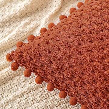 Show more Introducing the MIULEE Set of 2 Fall Burnt Orange Decorative Throw Pillow Covers—a perfect blend of comfort and style designed to elevate your living space! These exquisite pillow covers offer adorable pompoms on each edge, adding a delightful touch to the overall aesthetic. Made from soft, durable corduroy fabric, these covers feature a chic boho stripe design that adds a splash of warmth and elegance to your home decor. The rich burnt orange color embodies the essence of fall, making it an ideal choice for seasonal decoration while ensuring long-lasting use with thickened fabric and tight seams.