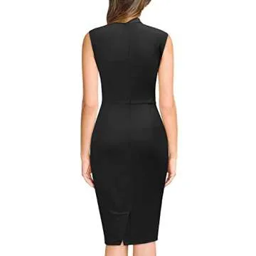 Miusol Women's Retro 1950s Style Half Collar Ruffle Cocktail Pencil Dress (Medium, Black)