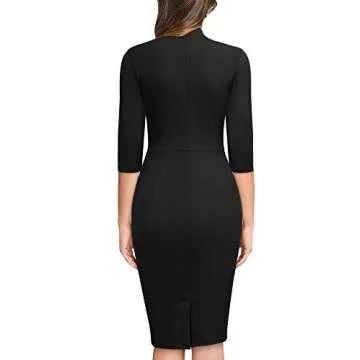 Miusol Women's Retro Half Collar Ruffle 2/3 Sleeve Cocktail Pencil Dress(Medium, Black)