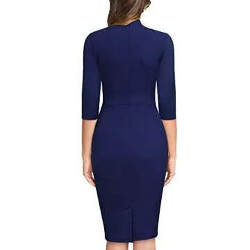Miusol Women's Retro Half Collar Ruffle 2/3 Sleeve Cocktail Pencil Dress(Small, Navy Blue)