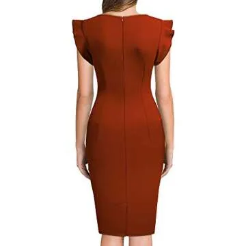 Miusol Women's Retro Ruffle Style Slim Work Pencil Dress(Small, Rust Red)