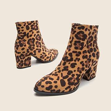 MixATB Women's Leopard Boots - Stylish Leopard Ankle Booties with Chunky Block Heel