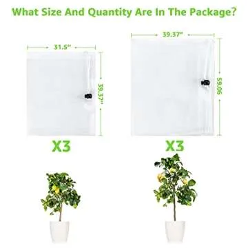 Show more Introducing the ultimate solution for avid gardeners and plant lovers alike—our Plant Netting Mesh Set. This comprehensive set includes two sizes of insect netting bags designed to protect your precious plants and vegetables from hungry birds, pesky insects, and other critters that threaten your garden's bounty. With dimensions of 31.5'' x 39.37'' and 39.37'' x 59.06'', you receive three sets of each size, ensuring a perfect fit for various plants, fruit trees, bushes, and vegetables. Whether you're nurturing tomatoes, blueberries, or ornamental plants, these netting bags are tailored to meet your specific gardening needs.