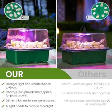 One of the standout features of this kit is the full spectrum LED lights, which mimic natural sunlight, encouraging healthier and faster growth for your indoor plants. Users have raved about how simple it is to assemble and manage, with no concern for condensation leaks once the lid is secured. The trays are designed for durability, ensuring they can be reused season after season without the worry of cracking or bending.