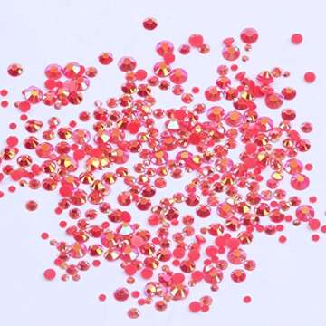 Mixed 1000pcs 2-6mm Red AB Resin Nail Rhinestones - Non Hotfix Glitter