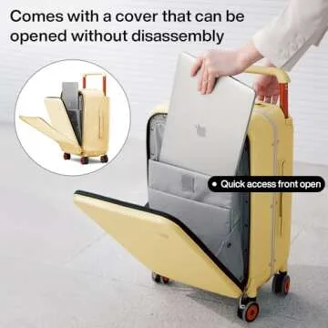 This luggage is not just about looks – it's about convenience too! Featuring a quick access front open pocket with a shockproof pad, you will find it effortless to store and retrieve your 15.6” laptop, tablet, or books. This thoughtful design ensures you can breeze through airport check-ins without the stress of fumbling through your belongings, allowing you to save valuable time during your travels.