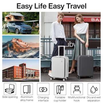 mixi Carry On Luggage with Cup Phone Holder and Charger Hard Shell Suitcases with Spinner Wheels, 20 Inch Smoke White