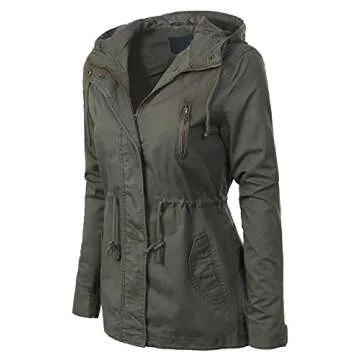 MixMatchy Women's Casual Military Anorak Jackets Zip Up Snap Button Hooded Parka Safari Utility Coats Outerwear Olive M