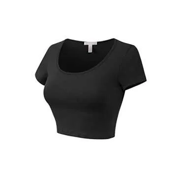 MixMatchy Women's Cotton Solid Scoop Neck Cap Sleeve Crop Top Shirt Black M