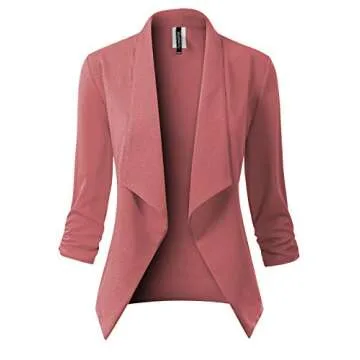 MixMatchy Women's [Made in USA] Classic 3/4 Gathered Sleeve Open Front Blazer Jacket (S-3XL) Dusty Pink M