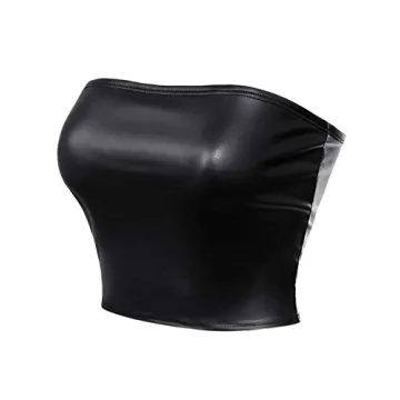 MixMatchy Women's PU Leather Crop Tube Top Strapless Sleeveless Sexy Party Clubwear Tops Black