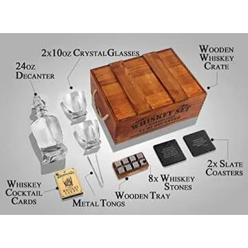 The timeless design makes it a superb centerpiece for any home bar, while its durable materials ensure longevity, allowing you to impress guests for years to come. This multi-functional set is perfect for whiskey aficionados and casual drinkers alike, making it a versatile addition whether you're hosting a gathering or enjoying a quiet night at home.
