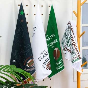 Mixweer Set of 4 Decorative Kitchen Towels: Absorbent Football Dish Cloths for All Occasions