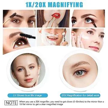 MIYADIVA 20X Magnifying Mirror with Light, Travel Magnifying Mirror, 1X/20X Vanity Mirror with Light, Adjustable Handle Travel Makeup Mirror, Touch Switch Light up Mirror for Plucking Eyebrows