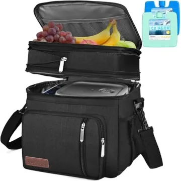 MIYCOO Double Deck Insulated Lunch Bag & Box - Large Cooler for Adults