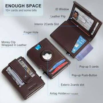 miyozi Airtag Wallet for Men,with Money Clip 10 Cards Metal Case Smart Slim Pop Up Credit Card Holder Flip with Magnetic Closure RFID Blocking wallet with Gift Box