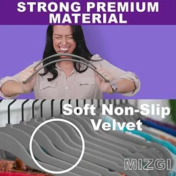 MIZGI Premium Velvet Hangers (50 Pack) Heavy Duty - Non Slip Felt Hangers - Velvet Suit Hangers Gray - Black Coated Hooks,Space Saving Clothes Hangers