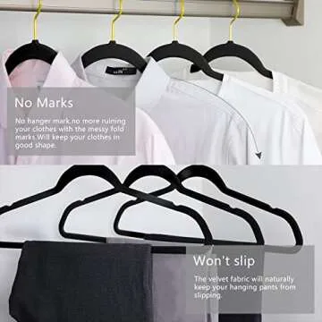 MIZGI Premium Velvet Hangers Pack 30 Pcs Heavyduty - Non Slip Slimline - Velvet Suit Hangers Black - Gold Hooks,Space Saving Clothes Hangers