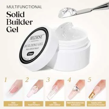 MIZHSE Solid Builder Gel for Nails, Non-Sticky Hard Gel Sculpting Gel, 3D Gel Nail Art Building Gel Carving Gel Modeling Gel Nail Extension Soak Off UV/LED Nail Art Salon Home DIY 15 g Clear