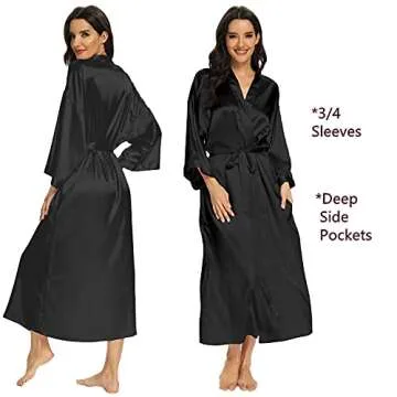 MizzGenio Women's Long Satin Robes - Elegant Lightweight Sleepwear in Black (S/M)