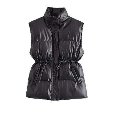 Show moreIntroducing the MJORI Women's Faux Leather Puffer Vest, the perfect blend of style, warmth, and functionality. This fashionable black puffer vest features a sleek faux leather exterior, designed to keep you looking chic while staying protected against cold winds. The mid-length, sleeveless design makes it a versatile addition to your wardrobe, ideal for layering over long-sleeve tops or pairing with your favorite outfits, whether for a casual day out or office meetings. Crafted with high-quality soft cotton filling, this vest ensures that warmth is never compromised.