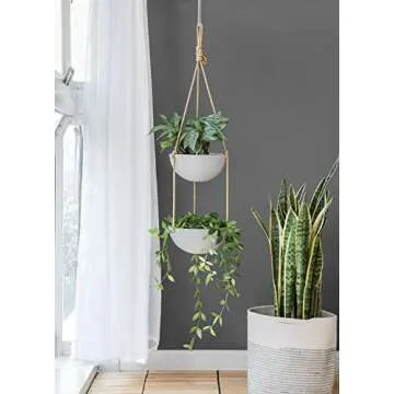 Show moreIntroducing the Mkono 9 Inch Ceramic Double Hanging Planter, the ultimate solution for plant lovers seeking a blend of aesthetic appeal and practicality. Crafted with precision, this beautifully designed round ceramic hanging planter showcases a modern minimalist style that fits seamlessly in any indoor or outdoor setting. Its elegant white ceramic finish complements various decors while ensuring robust durability to withstand the elements. Featuring a unique 2-tier design, this planter provides ample space for your beloved plants—from vibrant ivies to aromatic herbs and cheerful flowers, turning any area into a stunning green oasis.