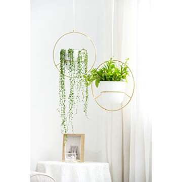 Crafted with meticulous attention to detail, this planter features a metal hanger, soft cotton rope, and durable plastic pots. It's designed to be sturdy and resilient, making it suitable for both indoor and outdoor environments. The gold ring beautifully complements the round flower pots, enhancing the aesthetic of any setting—whether it's your bedroom, living room, kitchen, or even your balcony!