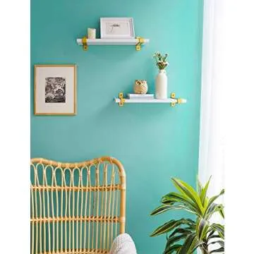 Mkono Floating Shelves White Set of 2 Gold Decorative Storage Shelves