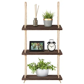 Show moreIntroducing the exquisite Mkono 3 Tier Wood Hanging Shelf, a stunning fusion of rustic charm and contemporary functionality. Crafted from premium Paulownia wood and secured with durable jute rope, this beautifully designed hanging shelf is perfect for adding style and organization to any space in your home. Standing at an impressive 34 inches high, with customizable spacing of approximately 8 inches between shelves, it provides plenty of room for your favorite decorations, plants, or essential items, all while maintaining a sleek and minimalist silhouette.