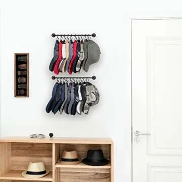 Mkono Hat Rack for Wall Baseball Cap Organizer Hanger with 20 Hooks Modern Metal Hat Holder Wall-Mounted Caps Display for Closet Door Bedroom Entryroom Laundry, Set of 2, Black