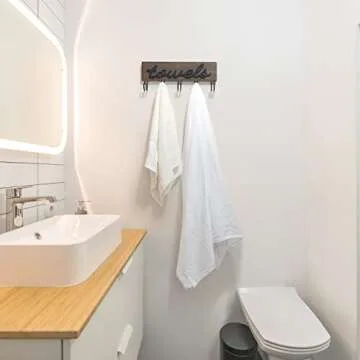 Show moreIntroducing the Mkono Towel Holder, a perfect blend of functionality and rustic charm for any bathroom! Designed with a unique "Towels" lettering that is both embossed and crafted from beautiful paulownia wood, this towel rack measures 12.6" L x 5.2" H, making it an ideal addition to your decor. Each of the five towel hooks is strategically spaced to ensure that your bath towels and bathrobes hang freely and dry completely, maintaining a tidy and organized space. Whether you’re enhancing a farmhouse-style bathroom or modernizing a guest bath, this elegant towel holder helps create an inviting atmosphere.